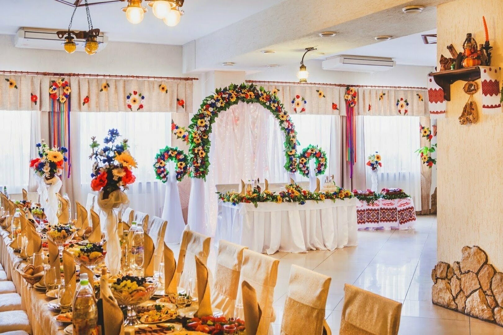 Банкетна зала на 120 чоловік. Ідеальне місце для проведення весіль в найкращих українських традиціях, а також ювілеїв, сімейних свят, корпоративів та ділових зустрічей. Смачна кухня, ретельне обслуговування, жива музика зроблять свято незабутнім. Вас приємно здивують ціни і різноманітність блюд!