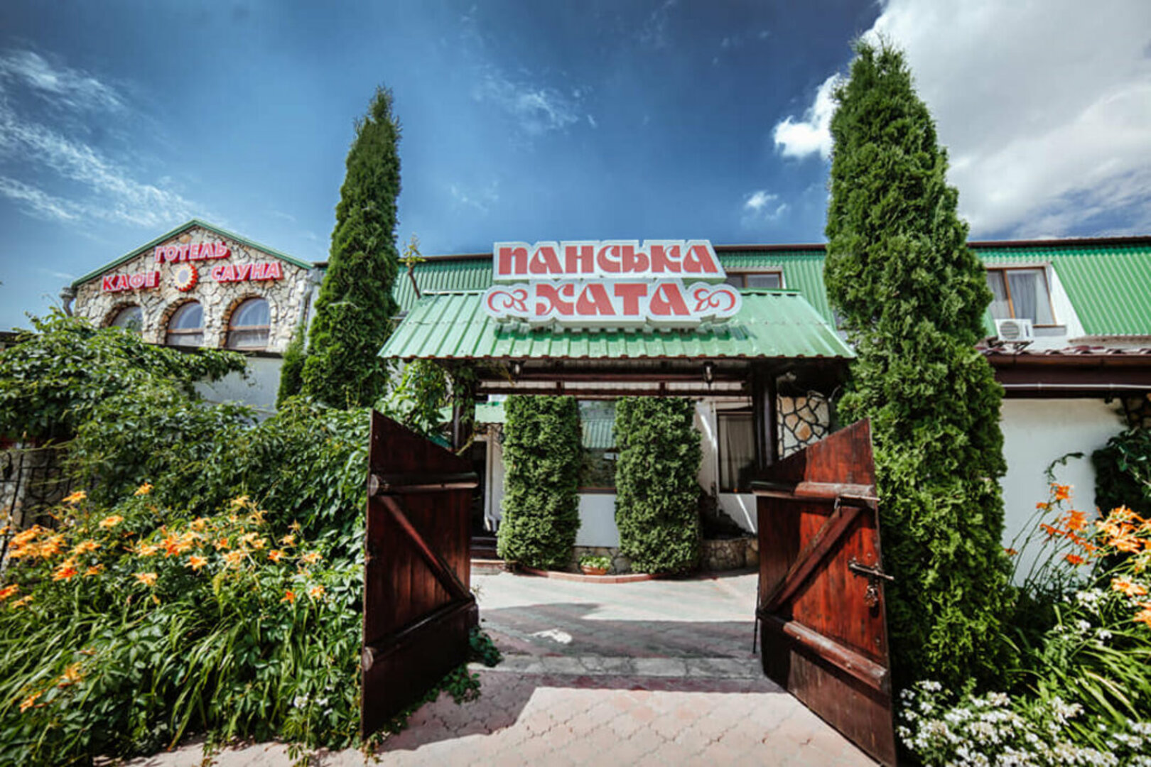 На базі нашого комплексу є: велика банкетна та камінна зала, караоке-зала, кафе-бар, готель, баня на дровах, автосервіс. Вас радушно зустрінуть мальовничі пейзажі, цікавий інтер'єр та затишна атмосфера у справжньому українському стилі.